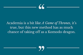 Academia is a bit like A Game of Thrones, it’s true, but this new method has as much chance of taking off as a Komodo dragon.