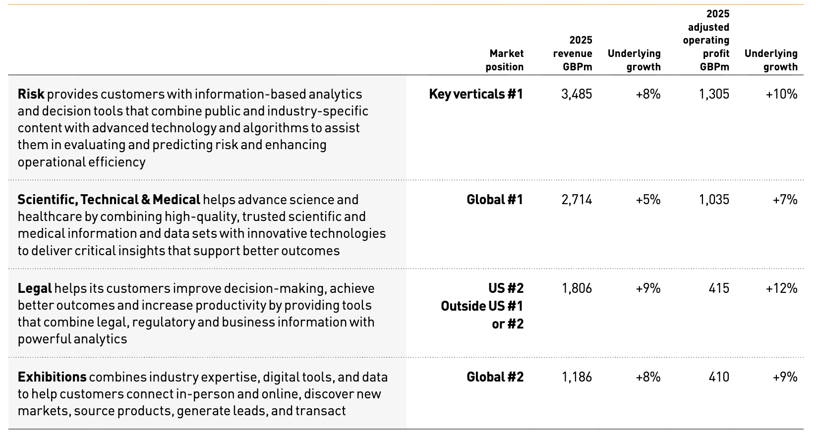 There are four divisions within RELX; the slowest growing, in terms of both revenue and adjusted operating profit, may surprise you: